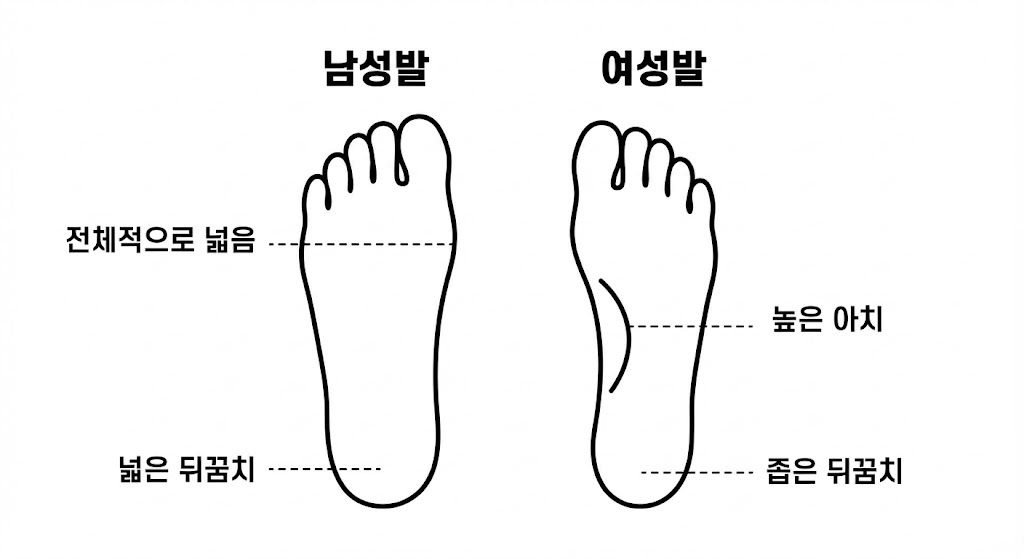 여성의 발은 단순하게 남성의 발을 축소 버전이 아닙니다.