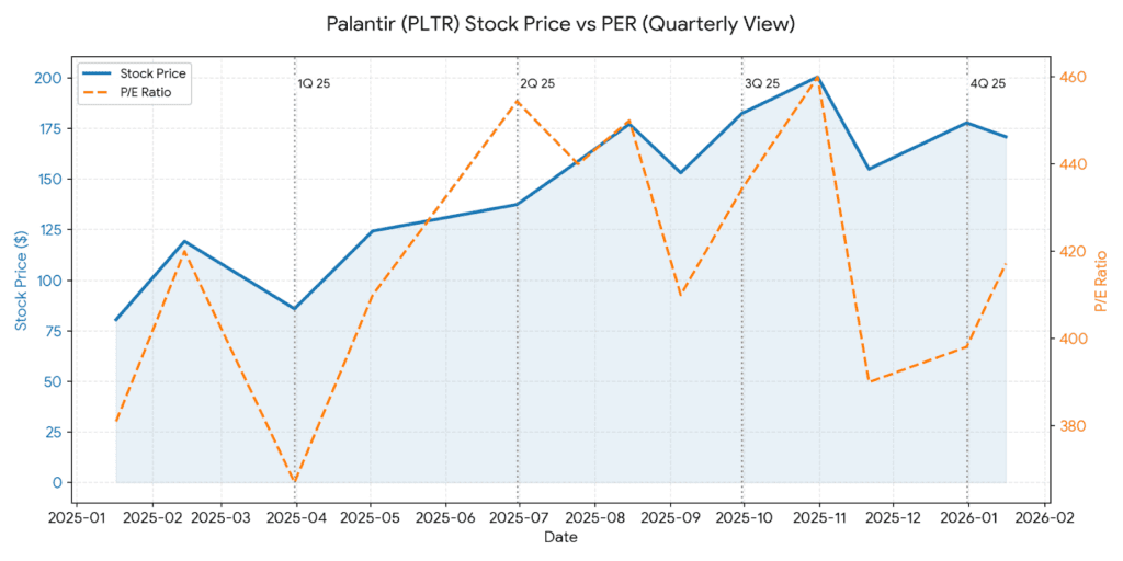 | 25년 4Q ~ 현재 | 연말에 팔란티어 주가가 조정장을 거치고 있습니다. |