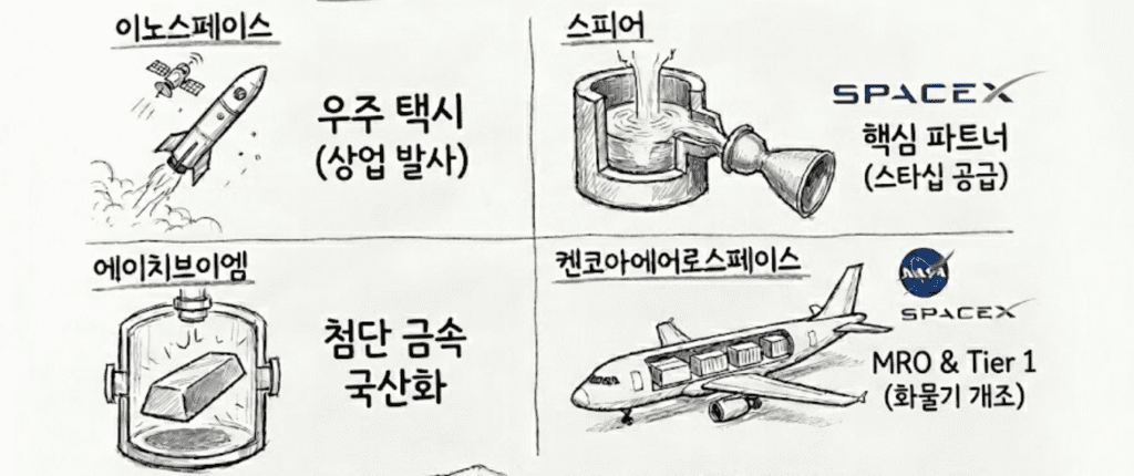 켄코아에어로스페이스는 항공우주 분야에서 수직 계열화 사업구조를 완성한 강소 기업 입니다. 켄코아는 미국 항공 부품사를 전략적으로 인수해 현지 거점을 확보했으며, NASA, 스페이스X의 1차 협력사(1-tier) 협력을 맺었습니다.